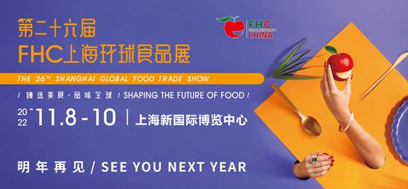 2022年11月8-10日,上海新國際博覽中心(浦東新區龍陽路2345號),FHC與熱愛生活和美食的你,不見不散!更多展會資訊,敬請關注FHC官方微信平臺:FHC上海環球食品展。